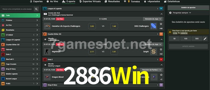 O 2886Win oferece uma grande seleção de opções de apostas em e-sports com probabilidades competitivas